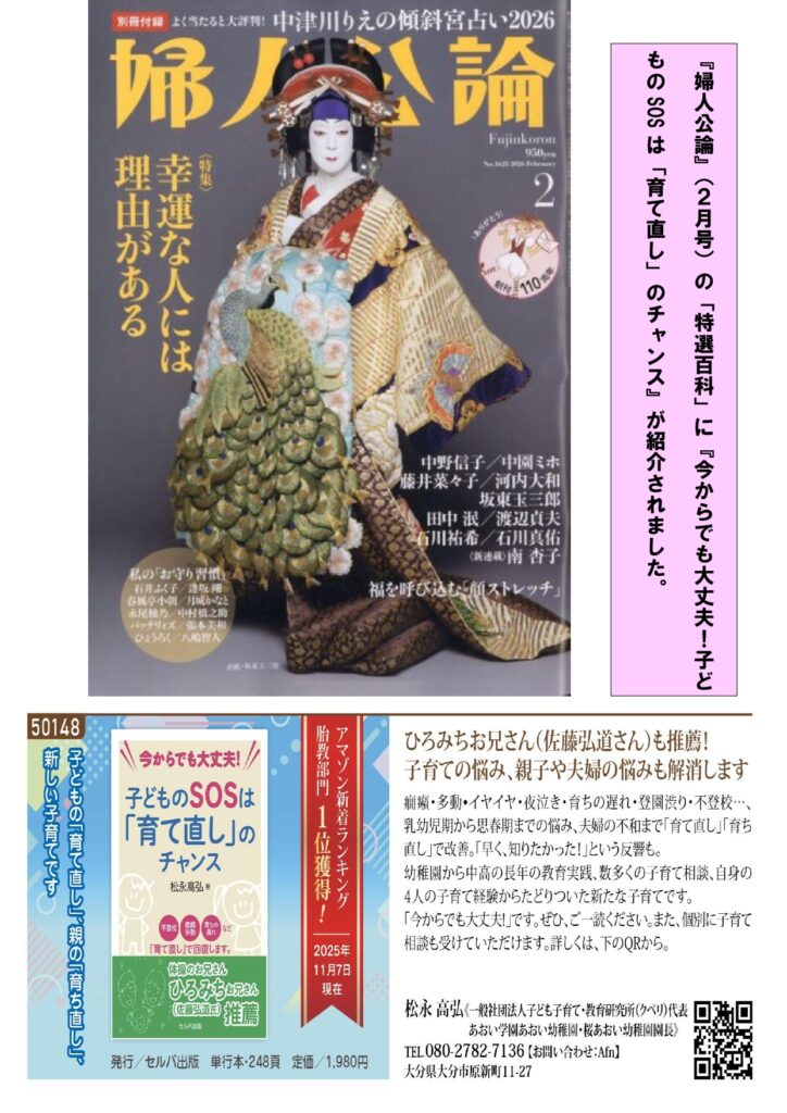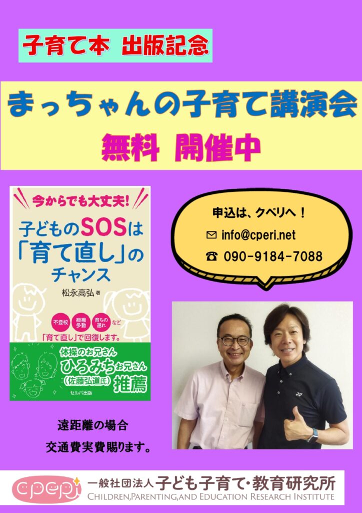 2026年01月21日 イベント情報 2月の「子育て無料相談」です!早めにお申し込みください。 2025年11月25日 イベント情報 1月の子育て無料相談(12月はお休みです) 2025年10月31日 イベント情報 11月の子育て無料相談 2025年10月18日 イベント情報 子育て本を出版!ひろみちお兄さんも推薦! 2025年09月18日 イベント情報 10月の子育て無料相談