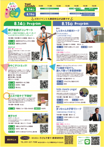 - 「親子歌遊びコンサート」「親子でリトミック」「親子ヨガ」
