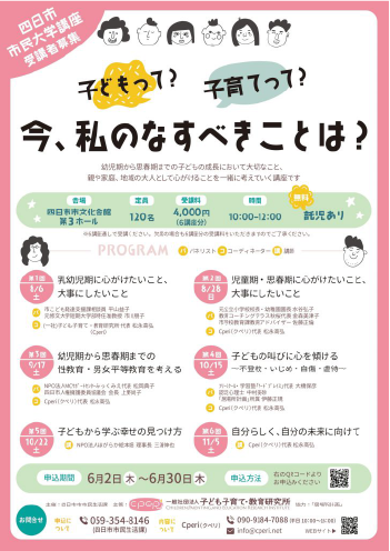 - 四日市市民大学講座(保護者・子どもの関係者・一般)